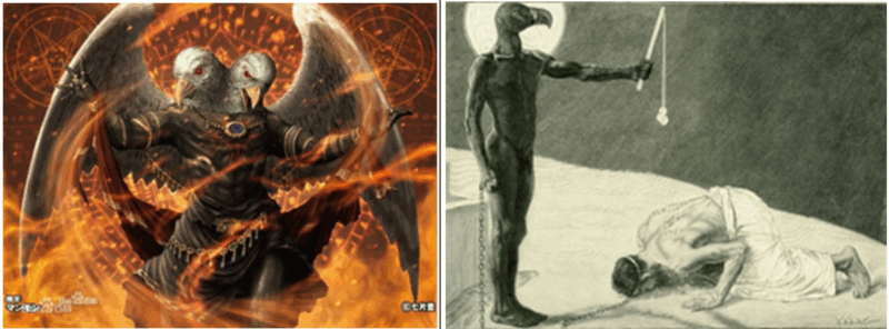上文提到大巴比倫各樣污穢之靈的巢穴,並各樣污穢可憎之雀鳥的巢穴,其實暗指人心崇拜的是瑪門的勢力!瑪門原意是指錢欲,後來變化成喜愛金錢的惡魔名稱。其肖像為全身黑色,持有雙鳥頭的惡魔。雙鳥頭代表兩重勢力的聯合和加強,背後就是對巴力亞斯他錄的崇拜,從而引向對撒旦的崇拜,最終導致滅亡!雙頭也表示在侍奉主的事情上不能專心。
